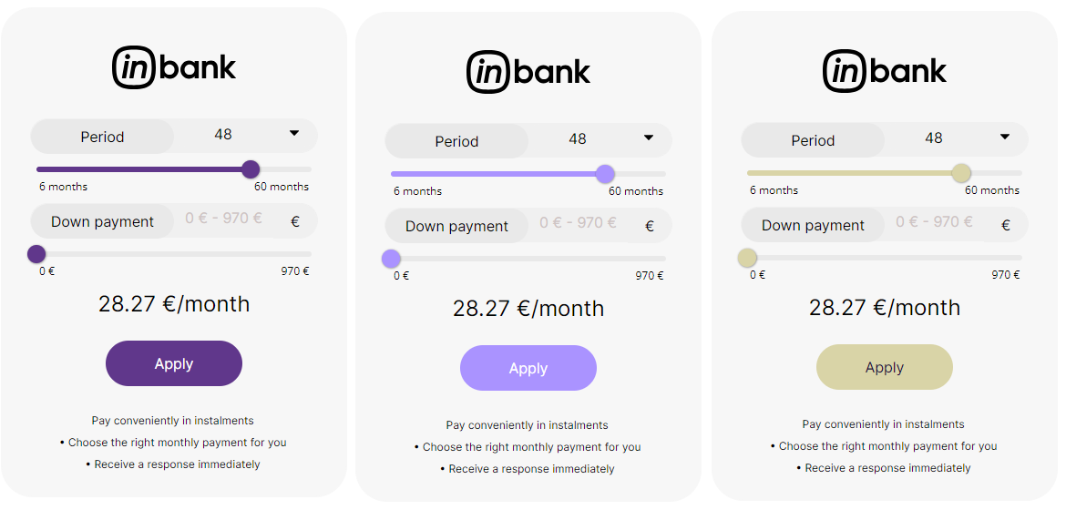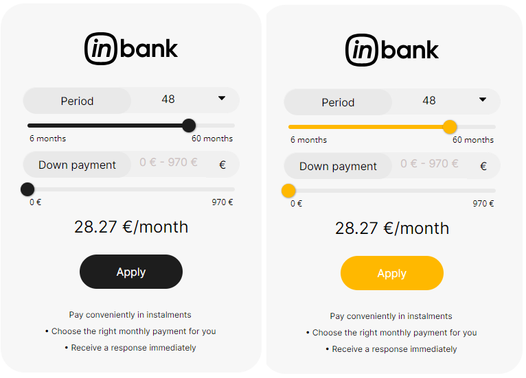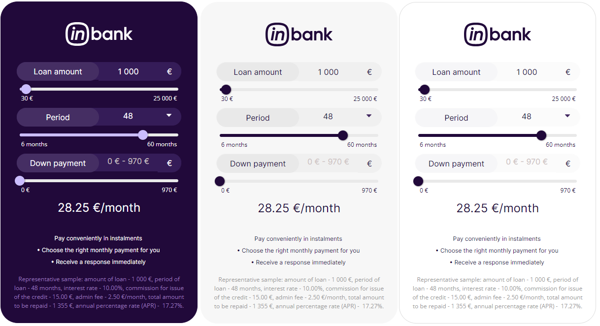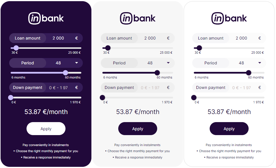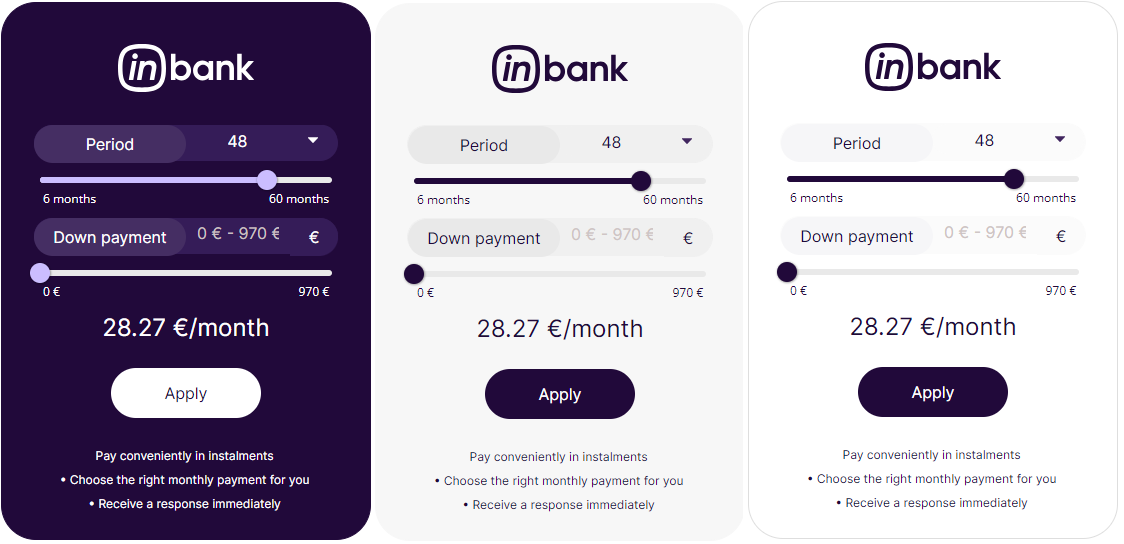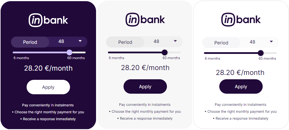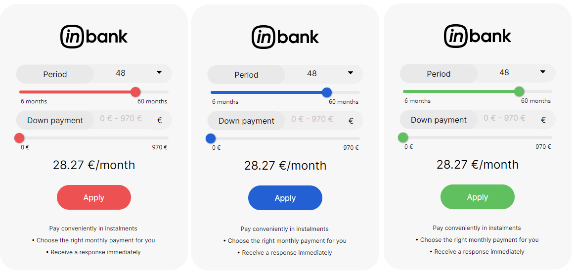 Here at Inbank we strive to help our partners sell more by simplifying purchases and making financing more accessible to customers. For this reason, we have built a plug-and-play calculator solution for our merchants. Just pick the calculator format suitable to your website, follow the simple steps below and start displaying monthly payments to your customers. This added feature will boost your conversion and sales.