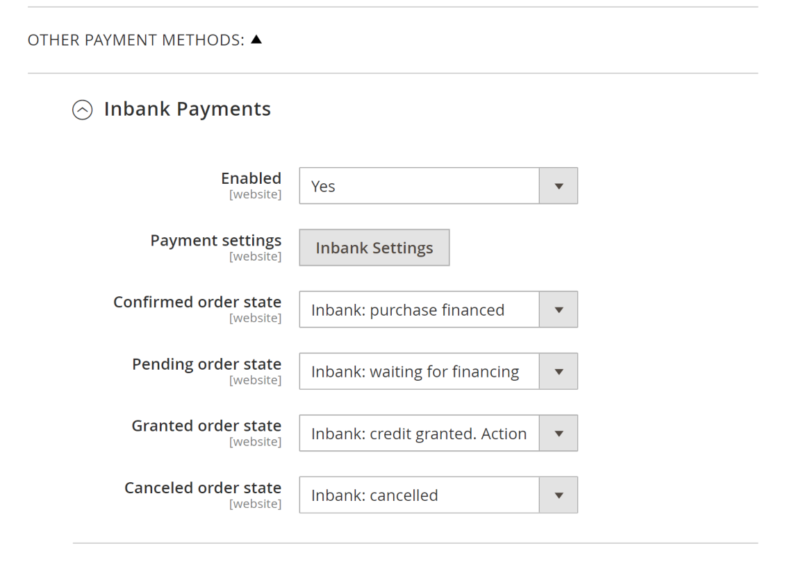 To enable Inbank payments in your store, set the Enabled parameter to `Yes`.