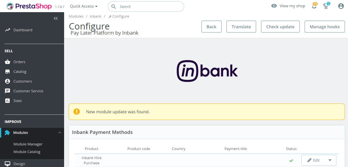 After successful installation of the Pay Later Platform by Inbank you can configure Inbank products as payment methods in your back office.