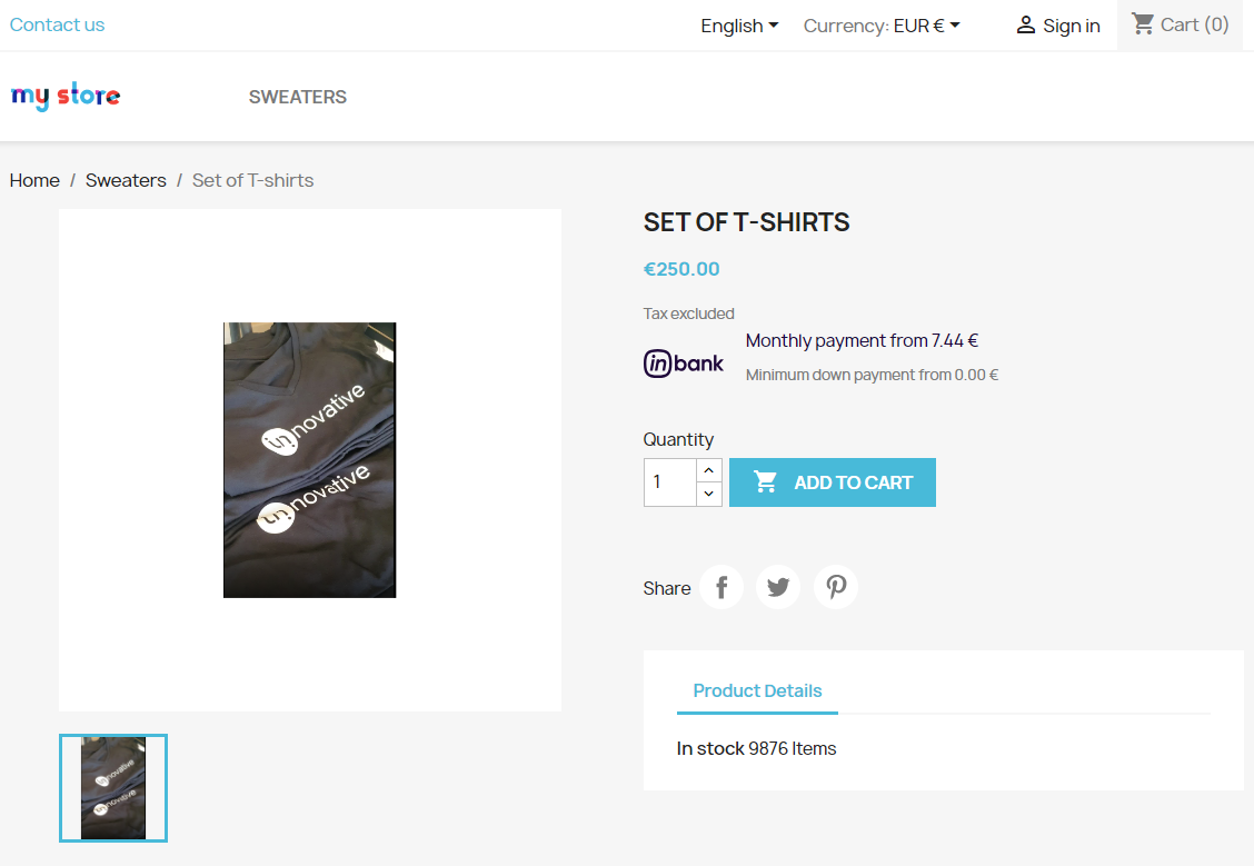 1. If enabled, Inbank monthly payment calculations appear on product pages.