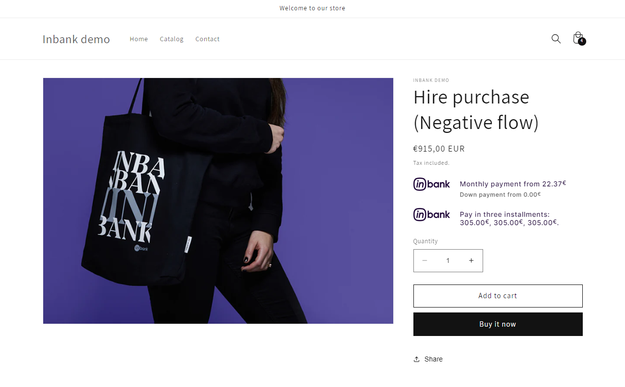 This section showcases how Inbank payment methods work in the store.