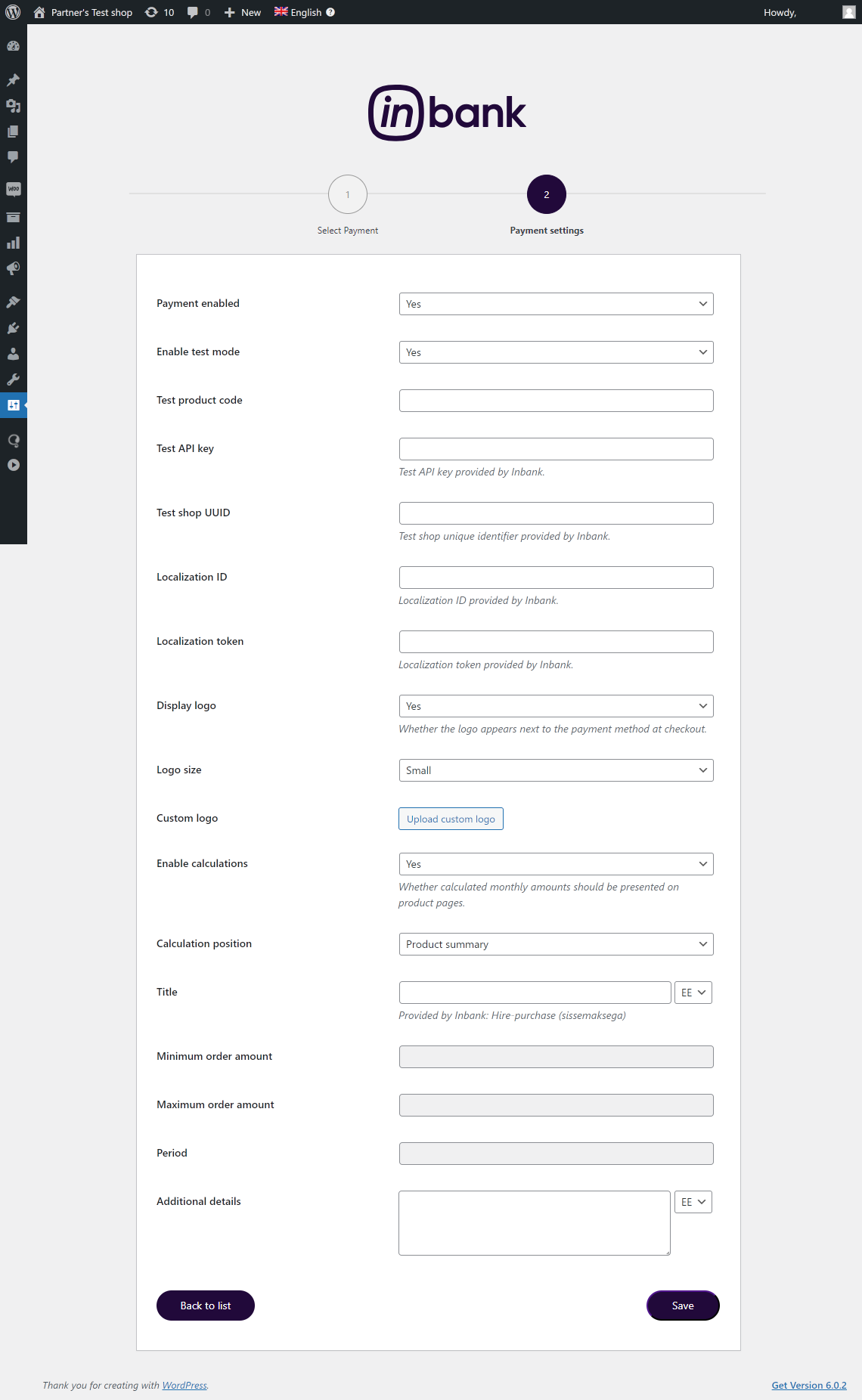 And that is it! The Pay Later Platform by Inbank plugin is ready for configuration.